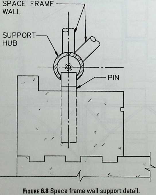 The Javits Convention and Exhibition Center, by Pei, Cobb, and Freed, provides a neat contrast to the Crystal Cathedral. Other than its enormous size, the most impressive feature of the Javits Center is its designers’ sensitive recognition and acceptance of the geometry of a space frame. By geometry, I mean the shape of the “building blocks” and the pattern they form: octahedra juxtaposed to tetrahedra. As Matthys Levy, the engineer in charge of the project, shows us in Chapter 6, this pattern controls and, to a certain extent, determines the shape of the building. One admires, in particular, how smoothly space frames are made to “turn the corners” as well as the expressive effect obtained at the main entrance of this civic palace. Nothing extraneous was added to the space frame, and nothing was subtracted from it. Levy’s no-frills writing style seems perfectly suited to the restraint of the design.